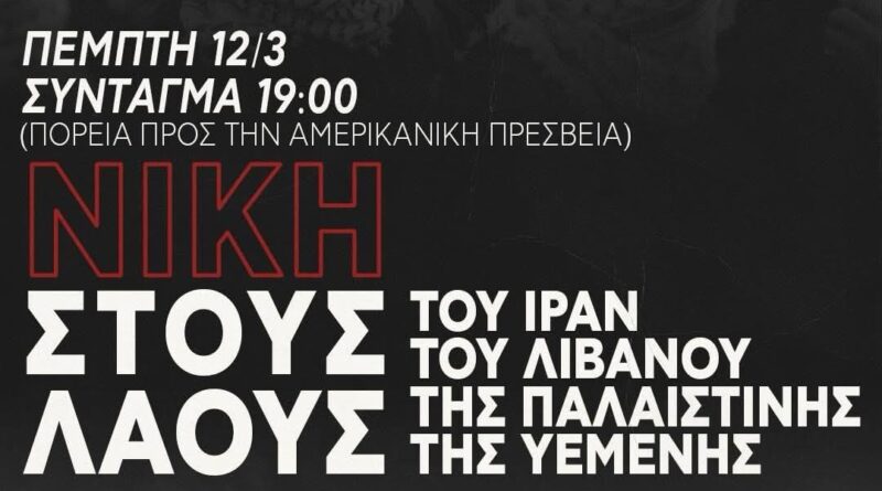 Read moreΣΥΜΜΕΤΟΧΗ ΣΤΗΝ ΑΝΤΙΠΟΛΕΜΙΚΗ ΠΟΡΕΙΑ [Πέμπτη 12/2 ΣΥΝΤΑΓΜΑ – 19.00] & ΚΑΛΕΣΜΑ ΣΕ ΑΝΟΙΧΤΗ ΣΥΝΕΛΕΥΣΗ [Δευ. 16/3 ΑΣΟΕΕ 18:30] Με μαζικές