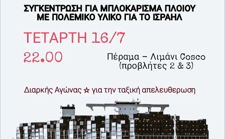 Read moreΚάλεσμα για την στήριξη της κινητοποίησης των λιμενεργατών του Πειραιά ενάντια στον ελλιμενισμό και την διαδικασία εκφόρτωσης πλοίου φορτωμένο με