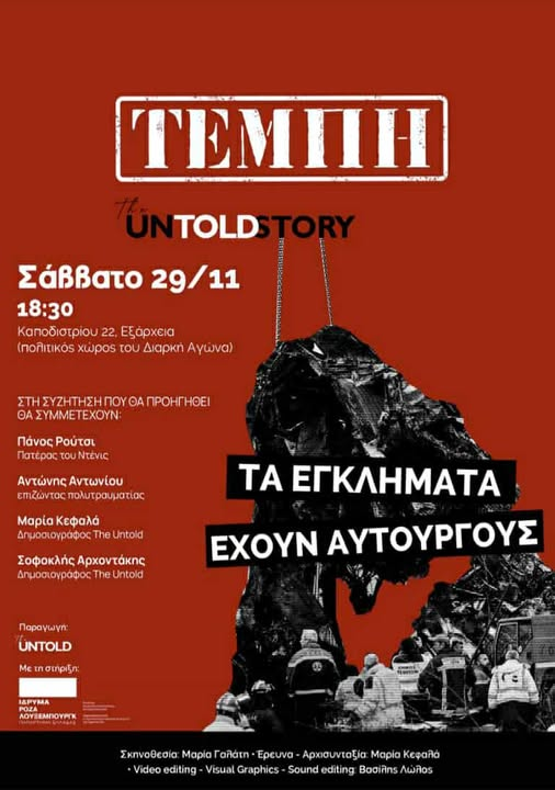 ΤΕΜΠΗ: THE UNTOLD STORY – ΣΥΖΗΤΗΣΗ & ΠΡΟΒΟΛΗ ΝΤΟΚΙΜΑΝΤΕΡ [Σάββατο 29/11/2025 | 18:30 Καποδιστρίου 22, Εξάρχεια ]